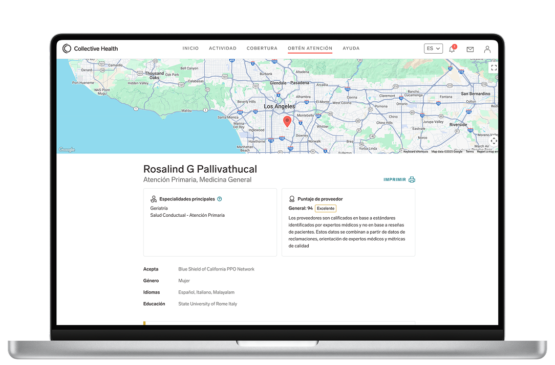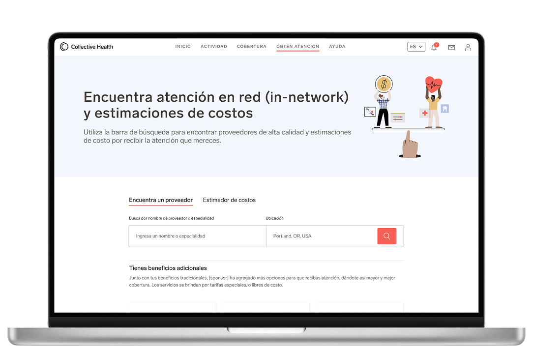 Puede buscar doctores, especialistas, farmacias e instalaciones médicas que están dentro de la red de su seguro en su cuenta de Collective Health.